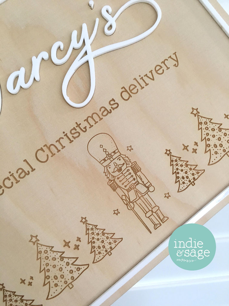 This is our Nutcracker Christmas design which will be personalised with your child's name along with the words "Special Christmas Delivery". Your sign will be handmade in our Adelaide Hill studio using locally sourced plywood and high quality acrylic. We are happy to change these words to something else, just leave us a message when ordering with your request.