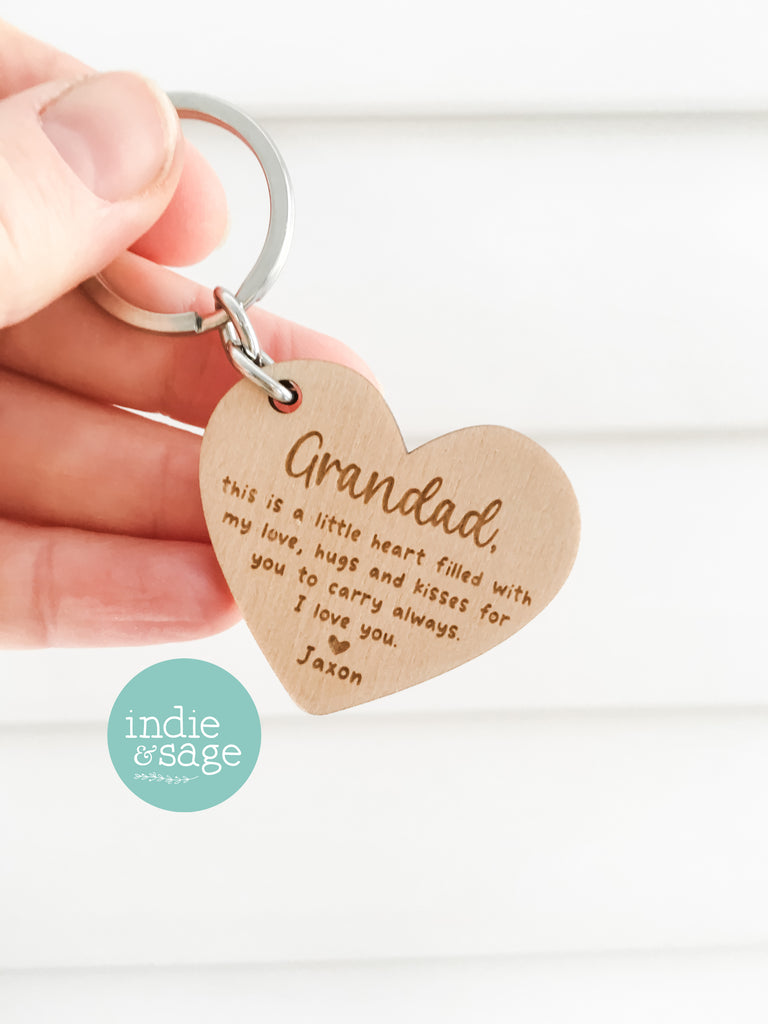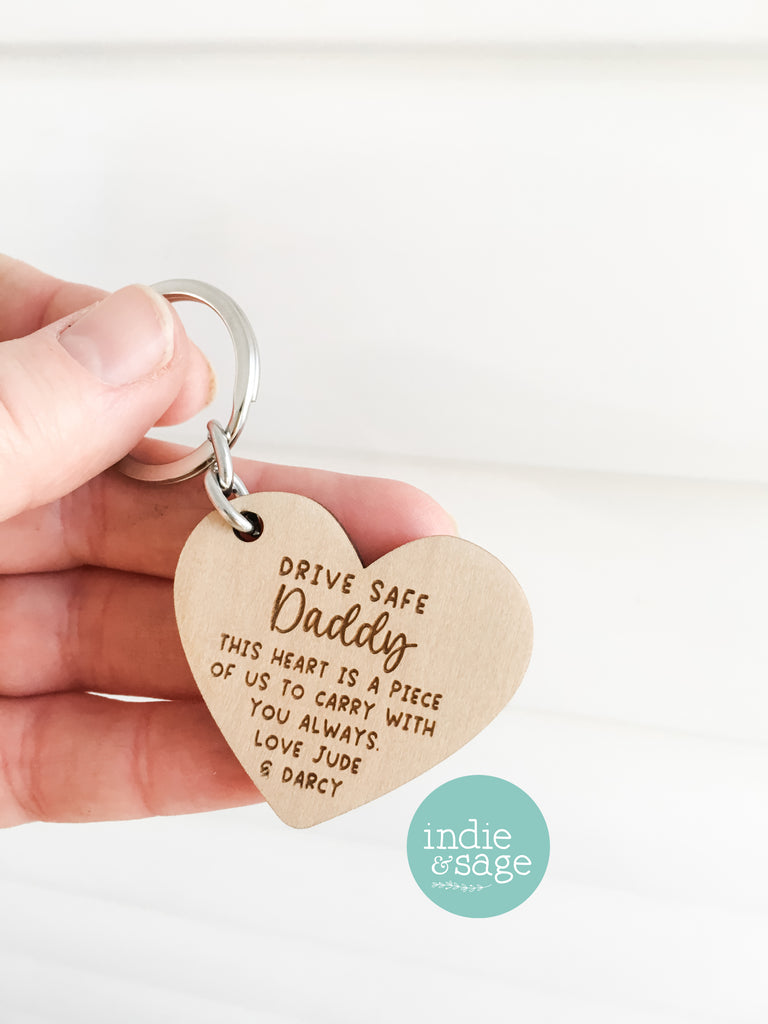 Wooden Heart Shaped Keyring - Father's Day Gift, Daddy Gifts, Dad Keychain