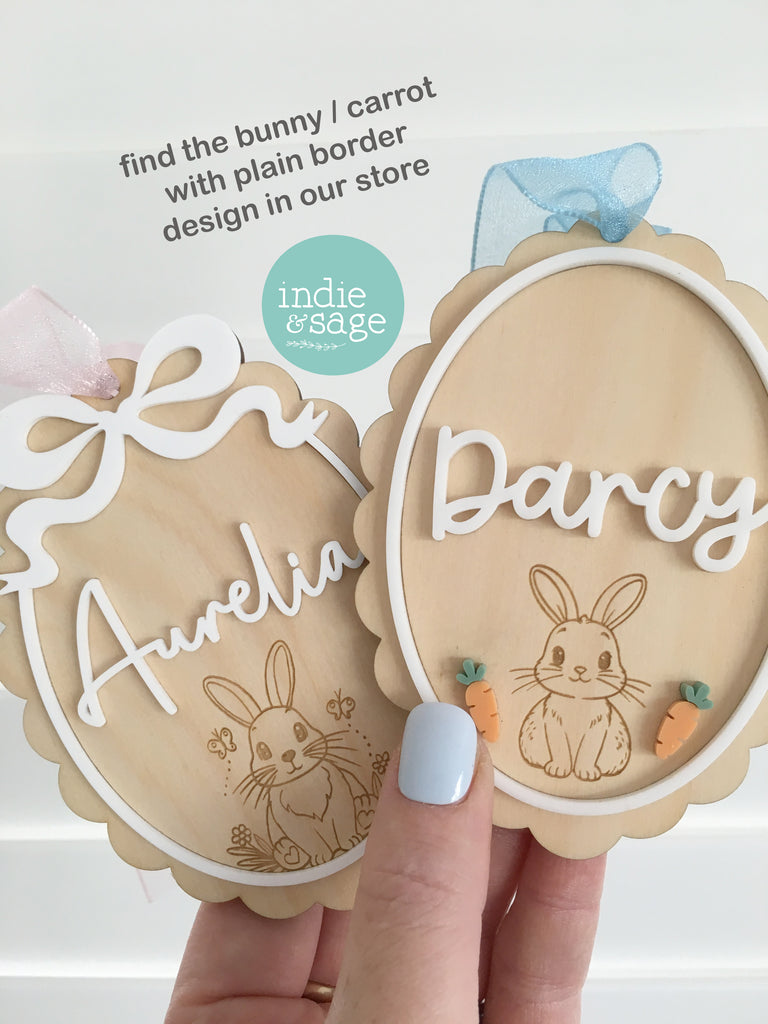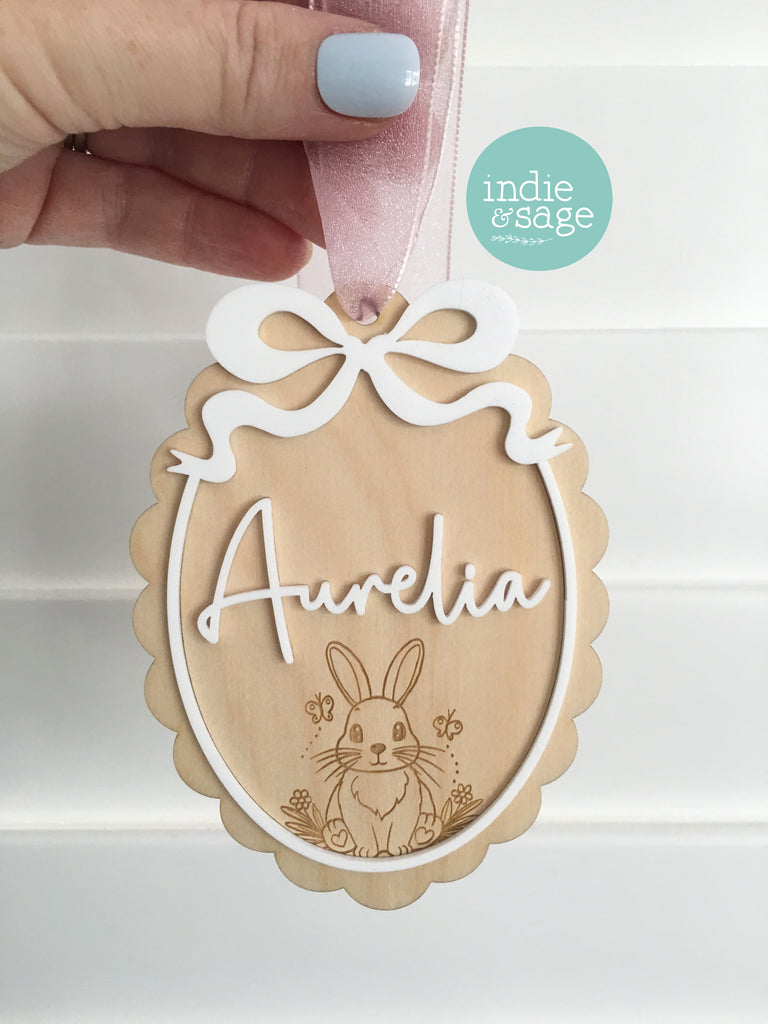 Personalised Easter Basket Tag – Bunny Name Tag with Bow | Custom Easter Basket Name Plaque