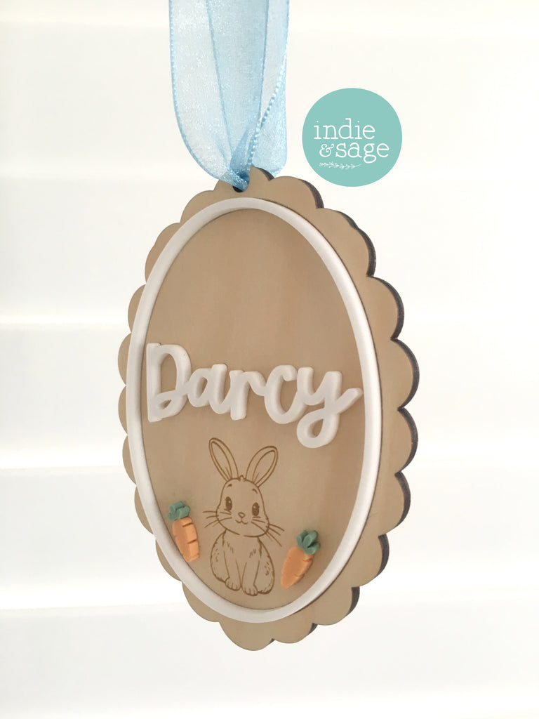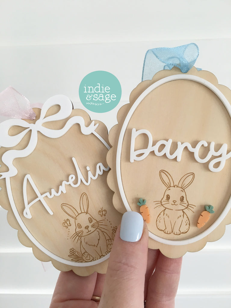 Personalised Easter Basket Name Tag – Bunny & Carrot Easter Basket Tag