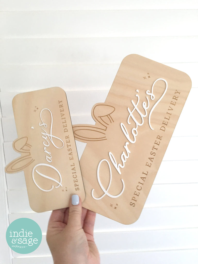 Your sign will be handmade in our Adelaide Hill studio using locally sourced plywood and high quality acrylic. If you would like us to change "Special Easter delivery" to some other words, we are happy to accomodate - just leave us a note when ordering to let us know what you would like (maximum 30 characters)