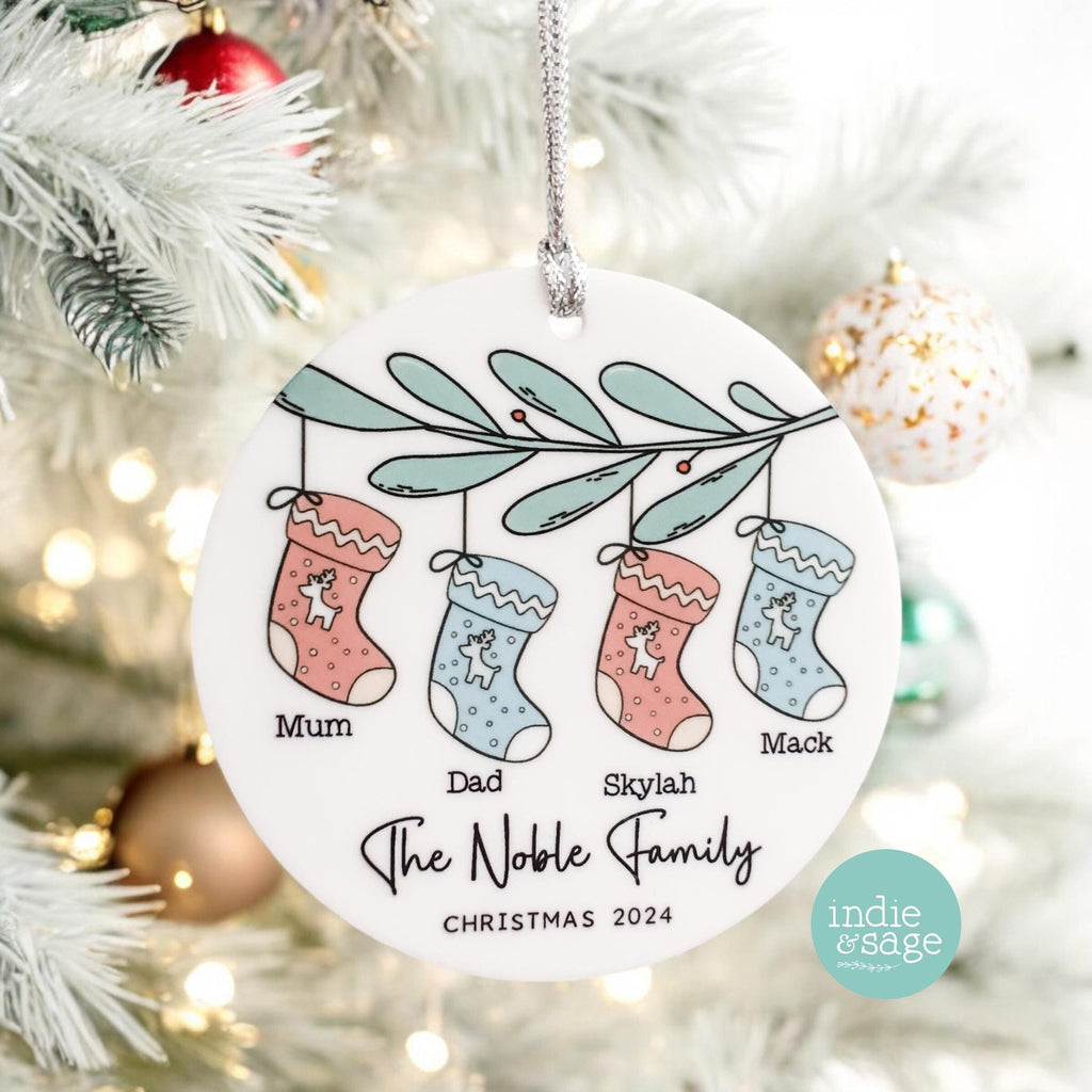 Christmas Tree Decoration - Family Christmas Ornament with Stockings Eucalyptus Style